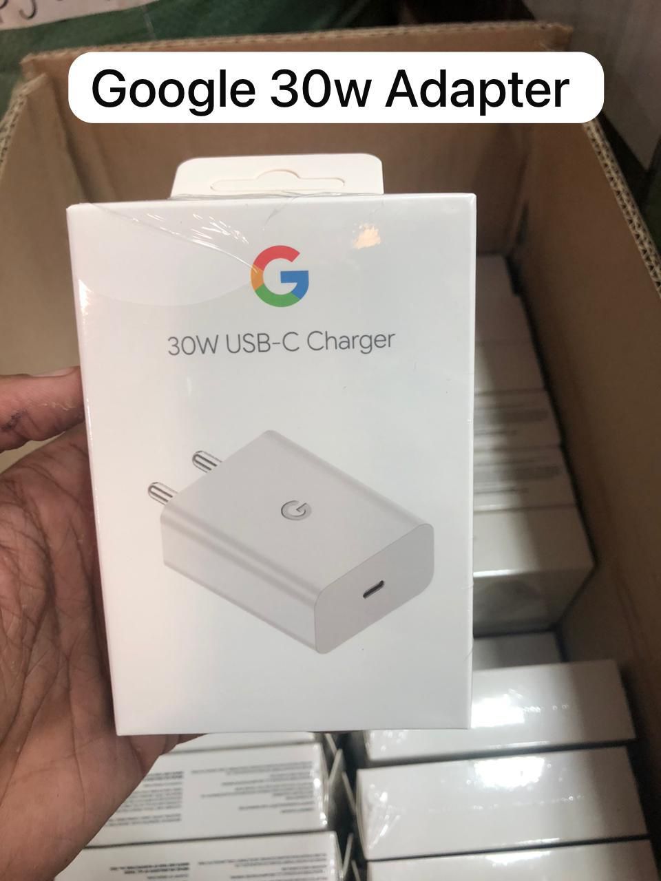 Original Google 30W USB-C wall charger with fast charging technology. Compact design with reliable power delivery for smartphones, tablets, and other USB-C devices. Perfect for retail stores and repair shops seeking premium charging solutions.